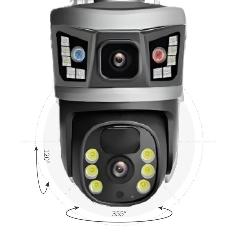 الكاميرا مزودة بعدسة تصوير عالية الجودة ومتحركة 360 درجة،